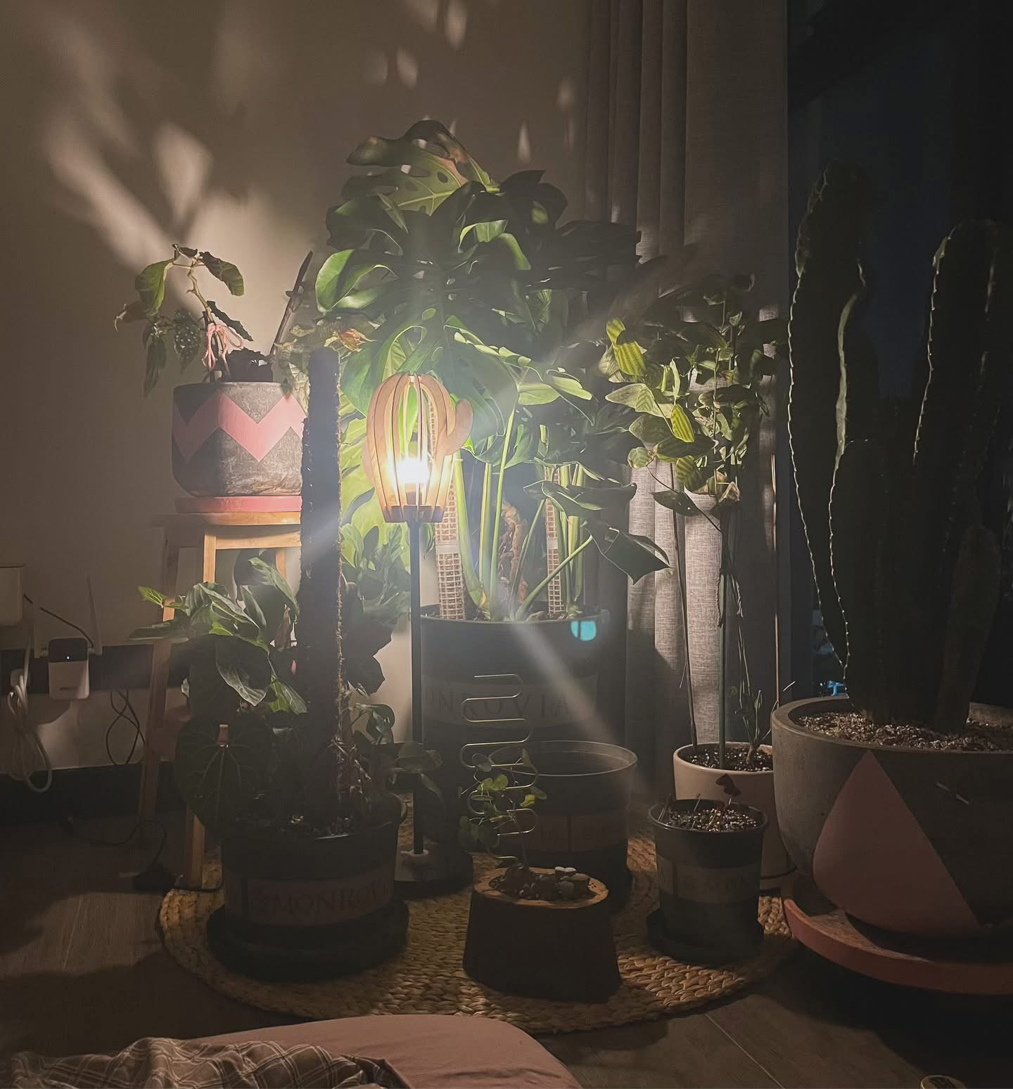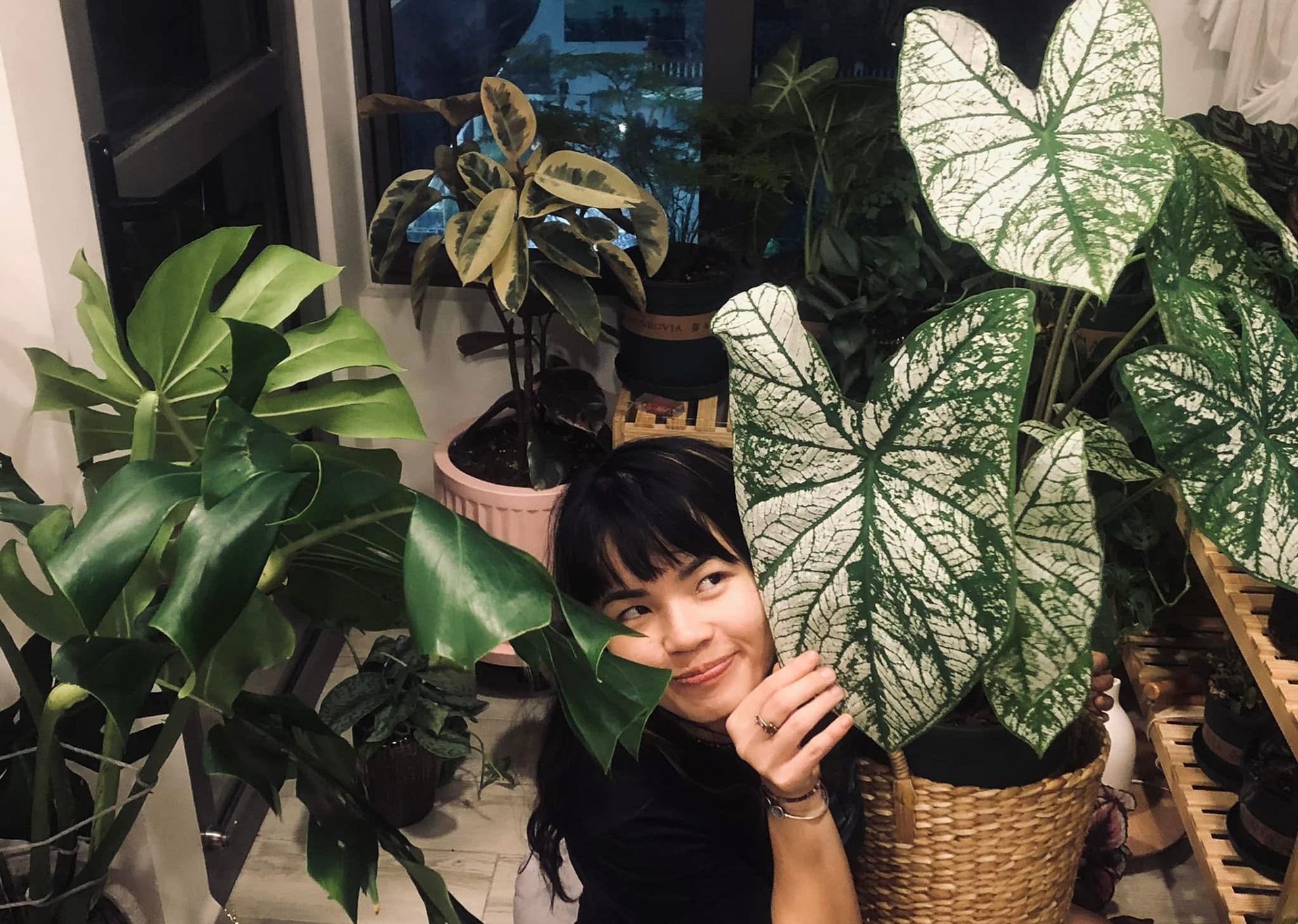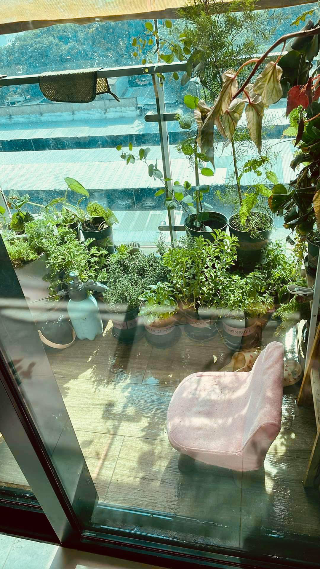 i have quite a green thumb who turns my balcony into a foliage garden and carries my unique pink identity everywhere i nest.