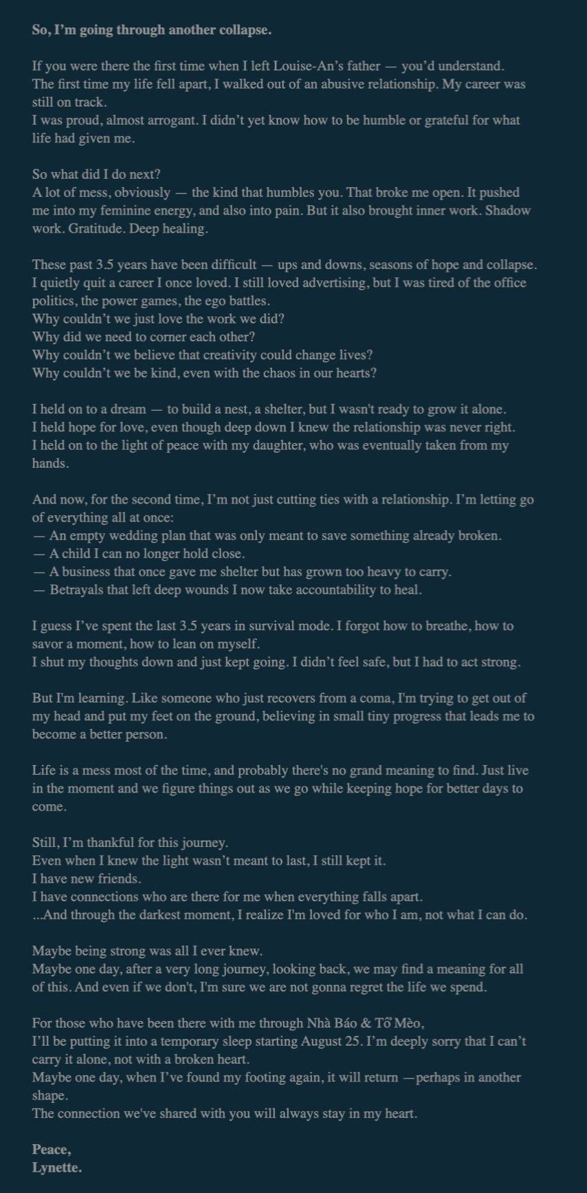 — the brand was tied to my identity as a “crazy cat lady”. customers called me by my real name, shared intimate things to me as a friend and saw me as a trusted helping hand in their pawrent journey. the emotional bond grew so strong that it became hard for another caretaker to step in; and it eventually led to emotional burnout.