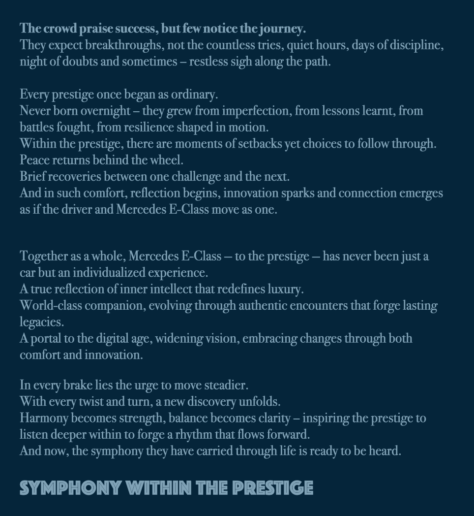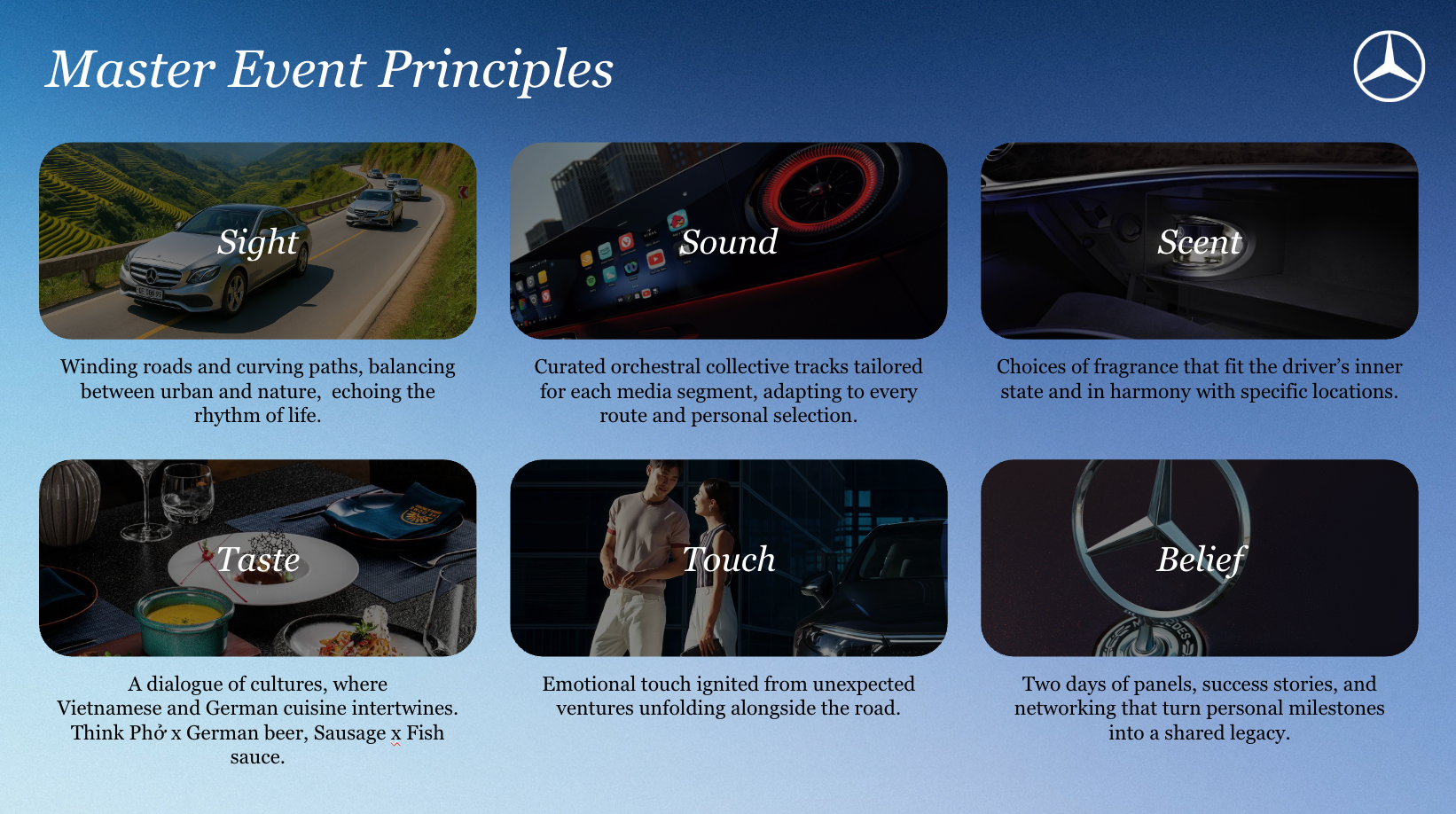 and 6 months before that, a collaboration with District Eight happened, a luxury furniture brand fond of prestigious cross-cultural events — the kind of vibe they rely on to sell themselves. i was simply used to this atmosphere to be able to walk in audiences' shoes for Mercedes's brief.